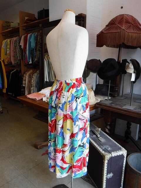 ヨーロッパ古着 red blue white yellow 80's floral gathered skirt