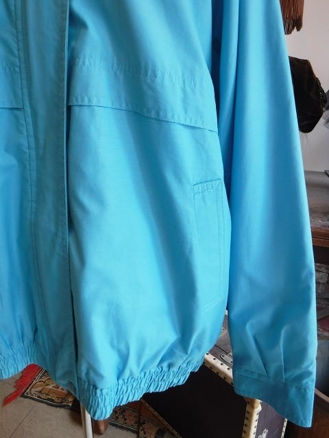 ヨーロッパ古着 Turquoise blue pile lining hooded windbreaker