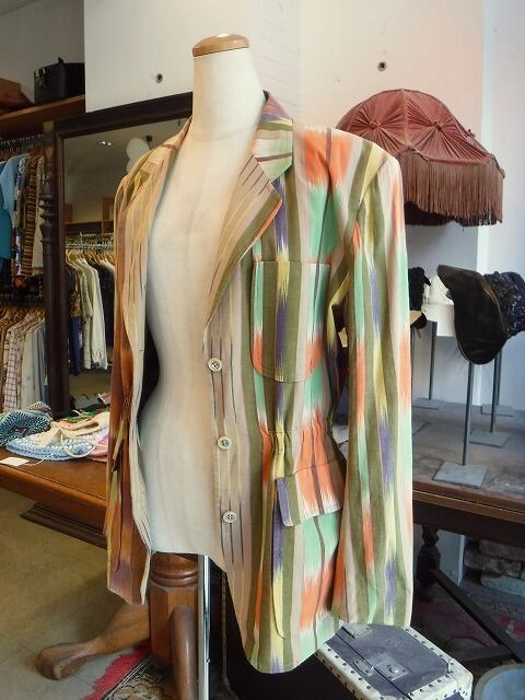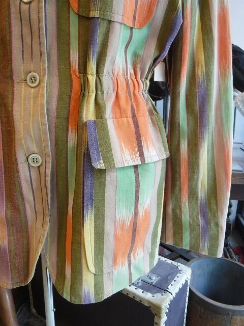 ヨーロッパ古着 beige orange green purple yellow lines safari mood light jacket