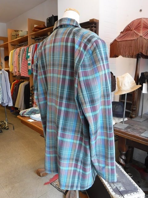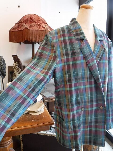 ヨーロッパ古着 blue tone plaid power shoulder 80's light jacket