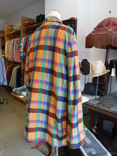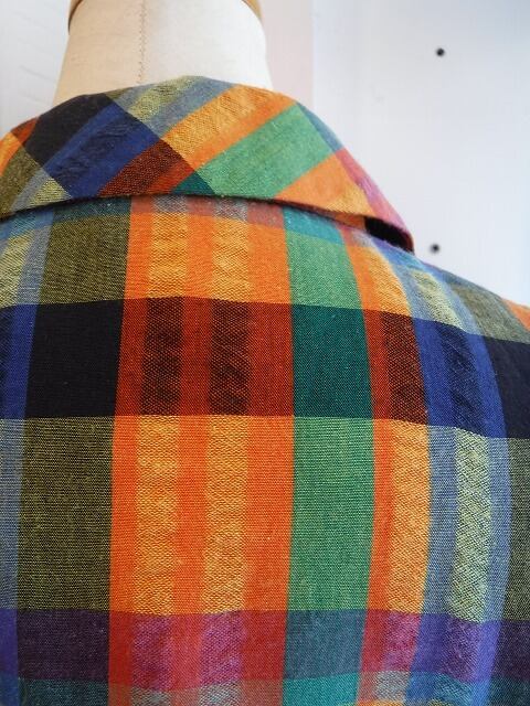 ヨーロッパ古着 orange navy green plaid cotton blend light jacket