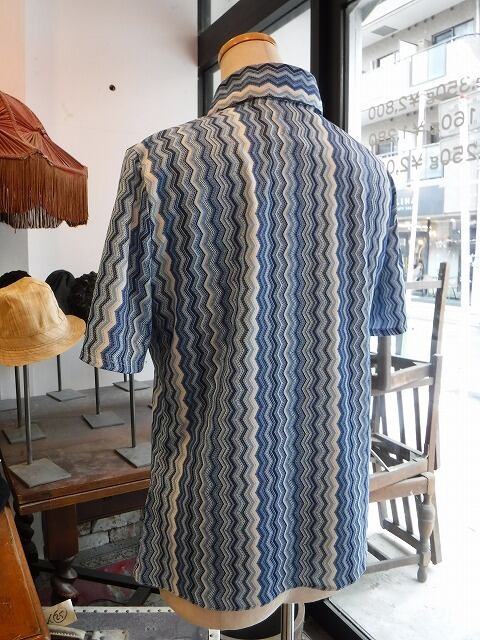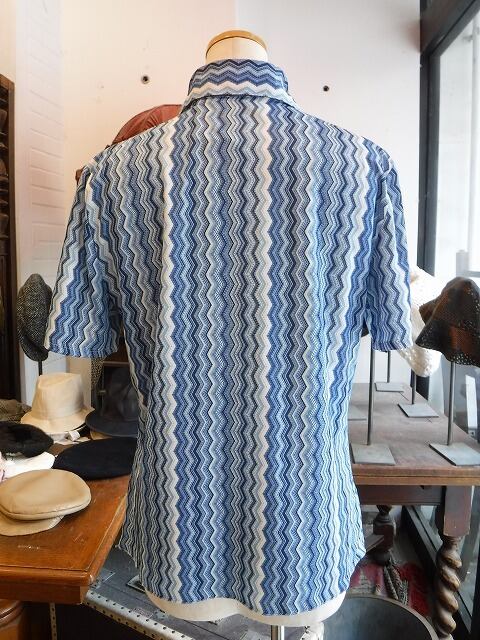 ヨーロッパ古着 blue tone zigzag graphic pointed collar 90's petit shirt