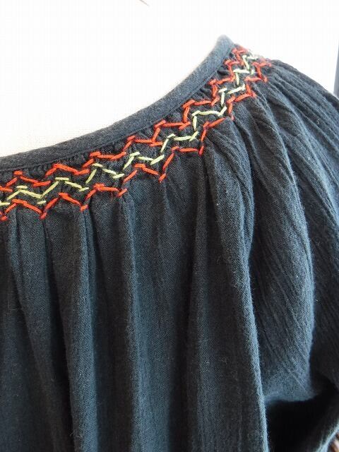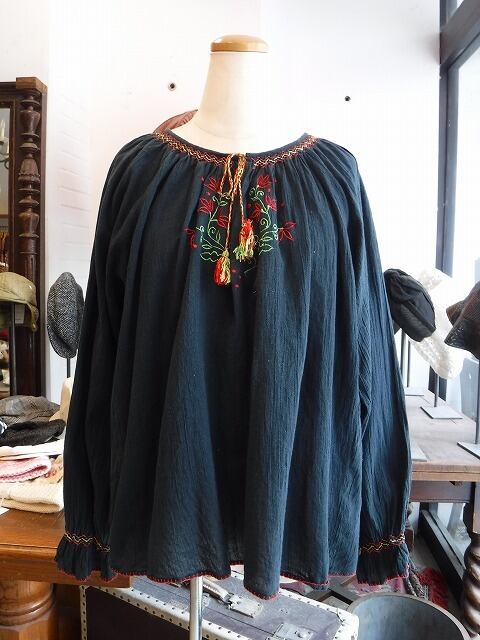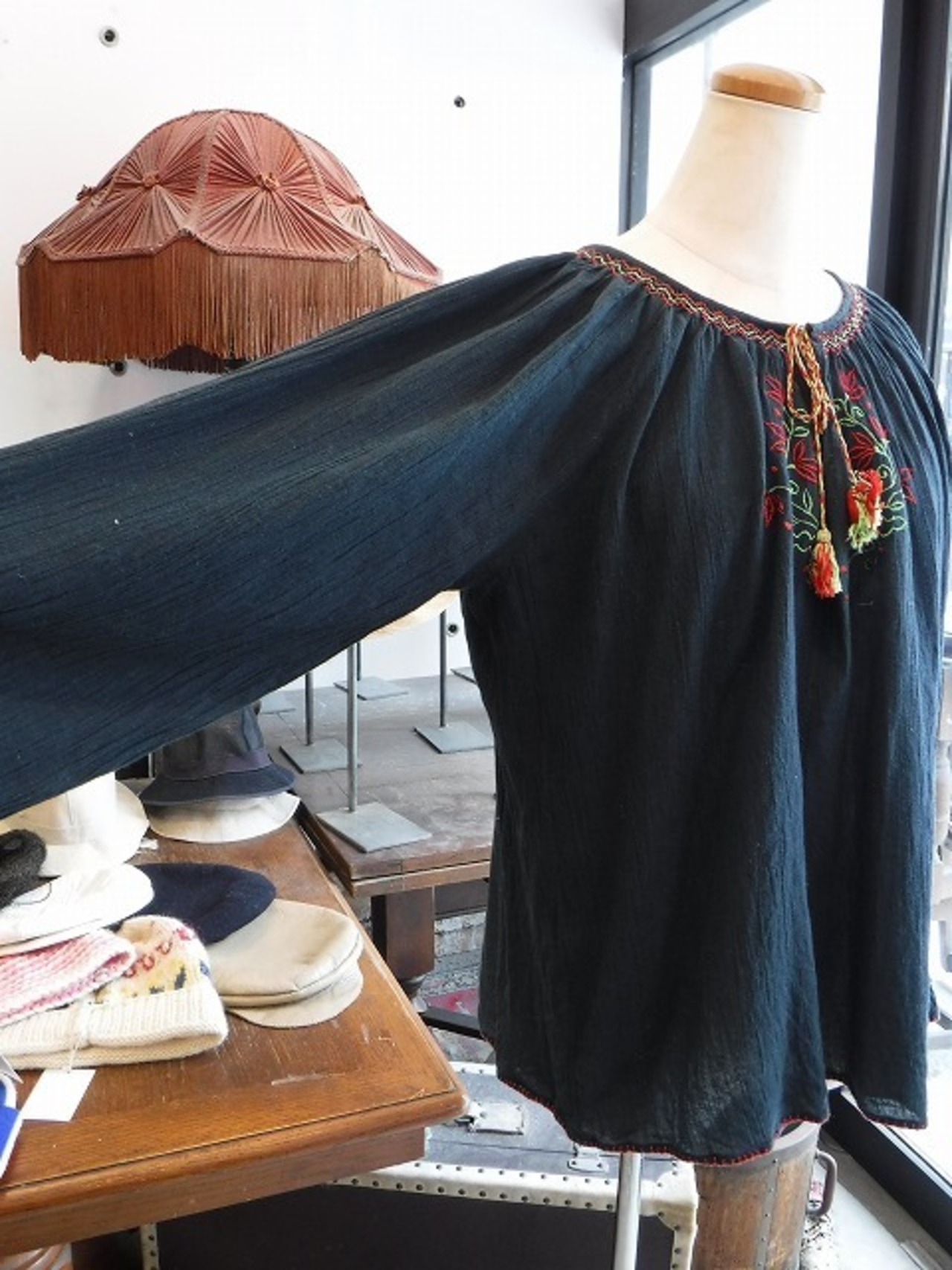 ヨーロッパ古着 navy cotton red green embroideried boho blouse