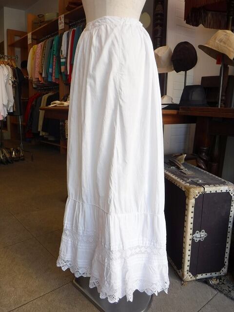 ヨーロッパ古着 white cotton red HV initials crochet lace ruffle hem long petit coat