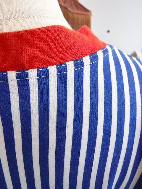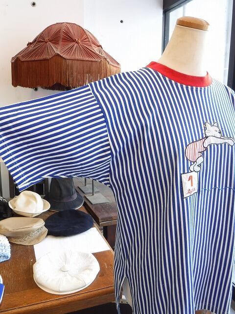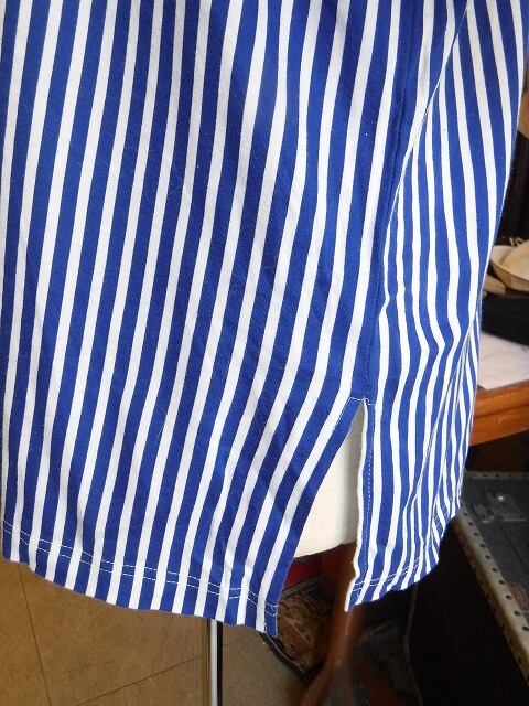 ヨーロッパ古着 blue white stripe cat patch cotton tee