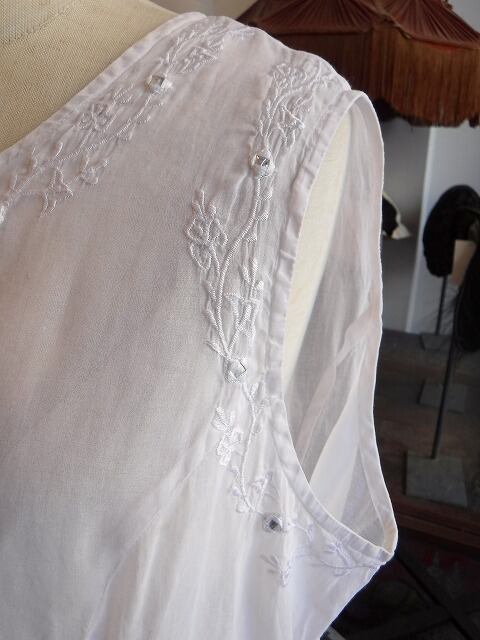 ヨーロッパ古着 [Rene Derhy] white cotton with embroidery see through maxi dress
