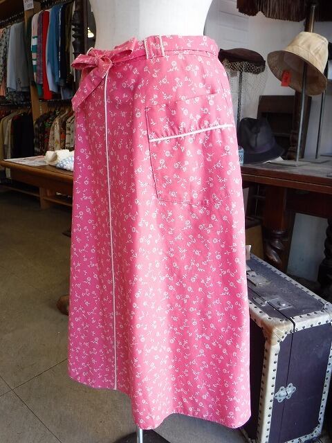 ヨーロッパ古着 bright pink white petit floral cotton wrap skirt