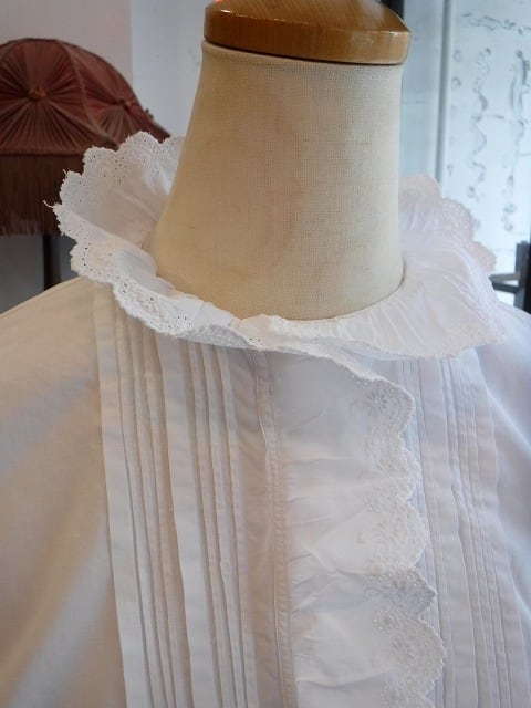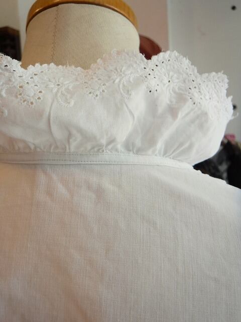 ヨーロッパ古着 eary 20th century red LP initials floral cutwork frill design white cotton blouse