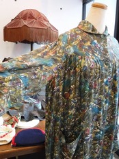 ヨーロッパ古着 shimmar Khaki blue red graphical round collar maxi dressing gown dress