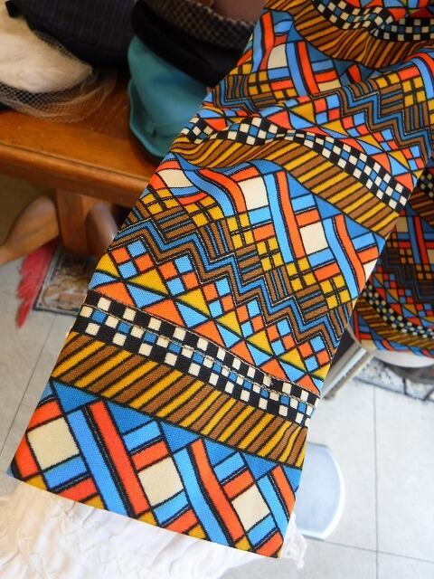 ヨーロッパ古着 orange tone geometric patterns high neck top