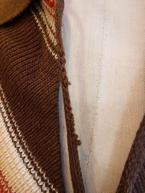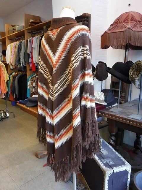 ヨーロッパ古着 brown white yellow orange lines knit poncho