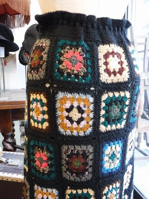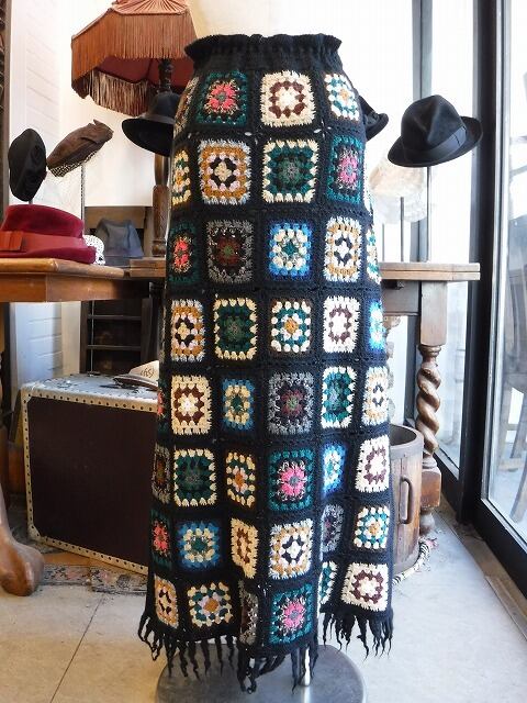 ヨーロッパ古着 black and multi colours crochet knit long skirt