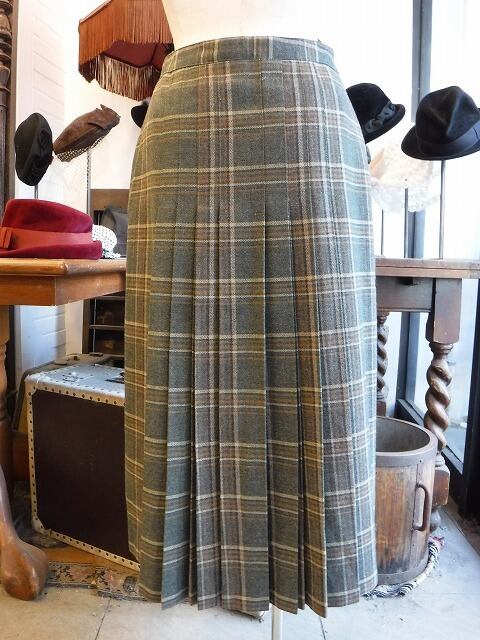 ヨーロッパ古着 smokey green tartan plaid fine pleats skirt