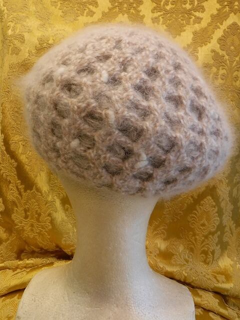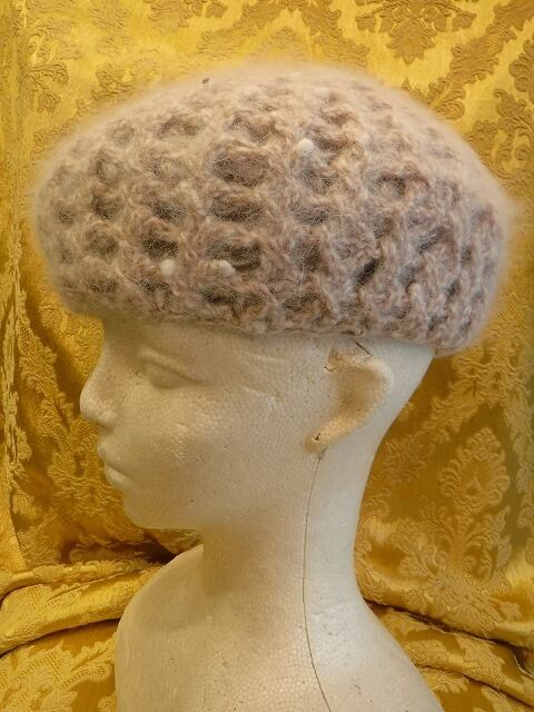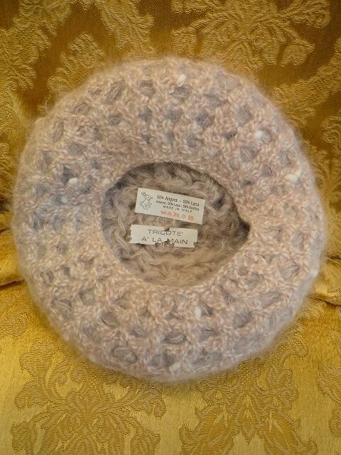 ヨーロッパ古着 pale pinky beige and white Angora blend knit beret