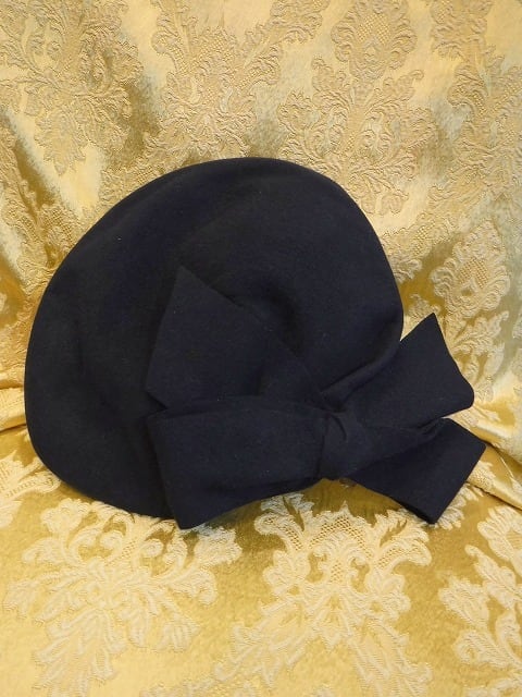 ヨーロッパ古着 black wool felt big bow design toque