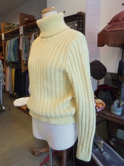 ヨーロッパ古着 pale yellowish ivory cable knit high neck pullover
