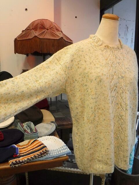 ヨーロッパ古着 ivory green yellow marble mock neck knit pullover