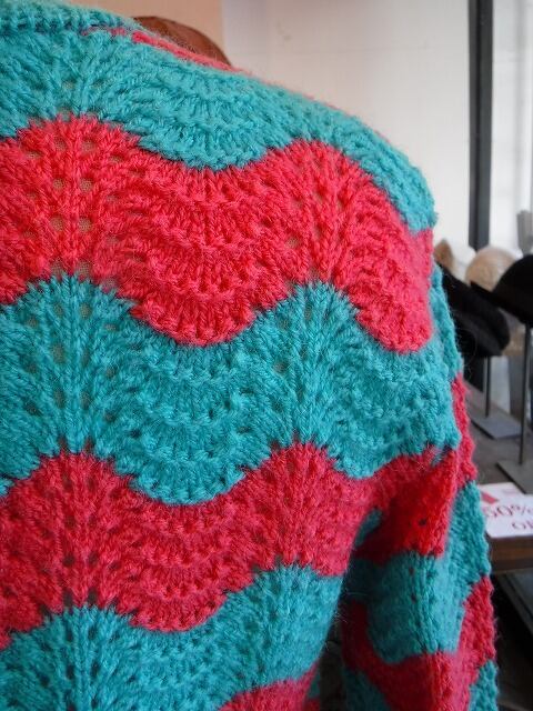ヨーロッパ古着 vivid sky blue and pink crochet knit pullover