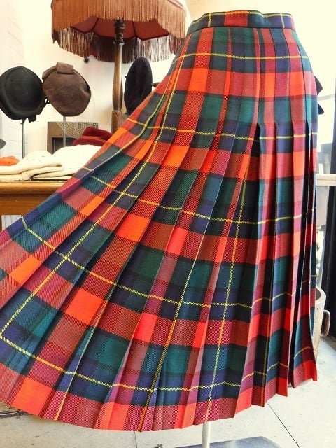 ヨーロッパ古着 red green tartan plaid made in U.K. pleated wrap skirt