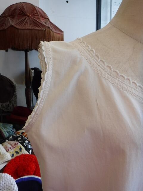 ヨーロッパ古着 early 20th century scallop rim sleeveless cotton nighty
