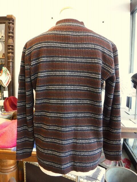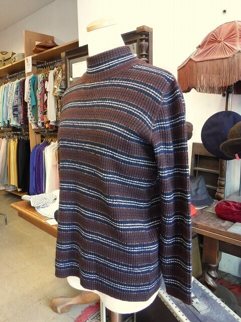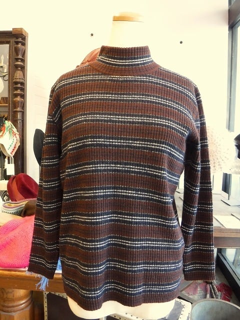 ヨーロッパ古着 chocolate brown black white lines high neck knitty top