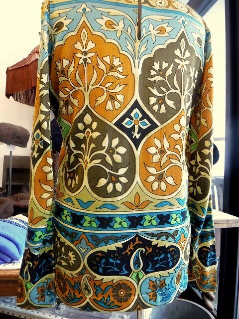 ヨーロッパ古着 orange blue brown yellow 1960-70's retro graphical blouse