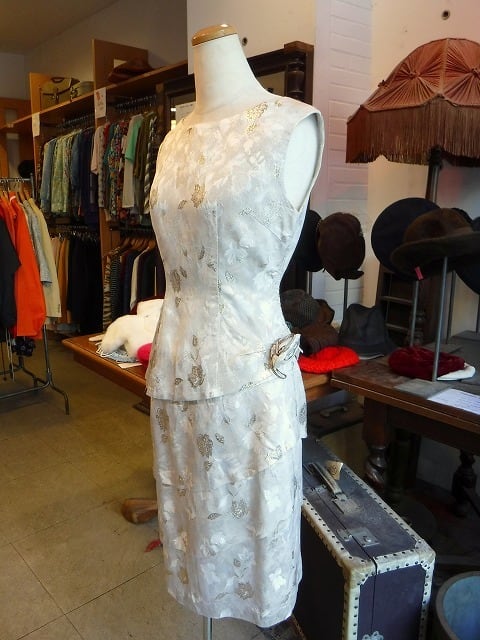 ヨーロッパ古着 glittery silver white bustier and skirt set