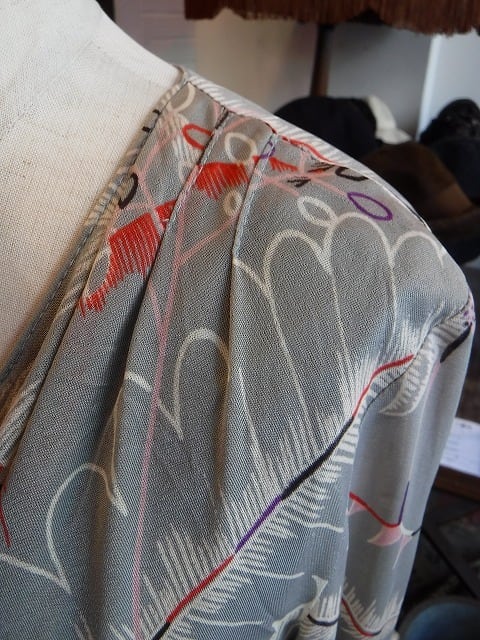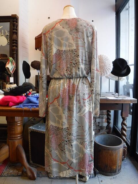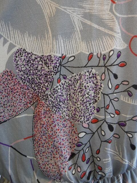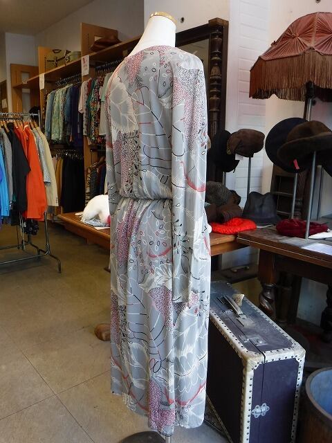ヨーロッパ古着 pale gray red blue purple graphical draped neck dress