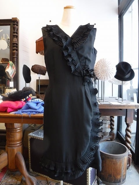 ヨーロッパ古着 black ruffle sleeveless cocktail dress