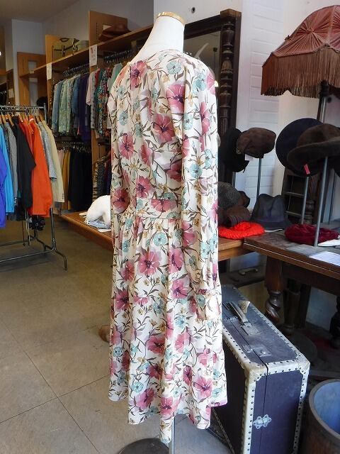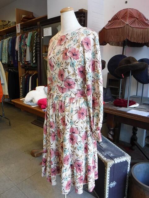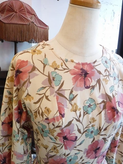 ヨーロッパ古着 beige smokey pink green floral dress
