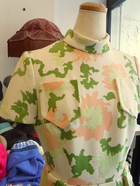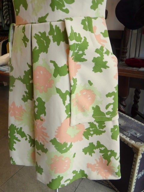 ヨーロッパ古着 ivory pale pink green blurred graphic half sleeve 1960's dress
