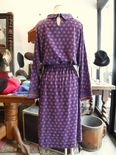 ヨーロッパ古着 dark purple red blue ◇graphic dolman sleeve dress