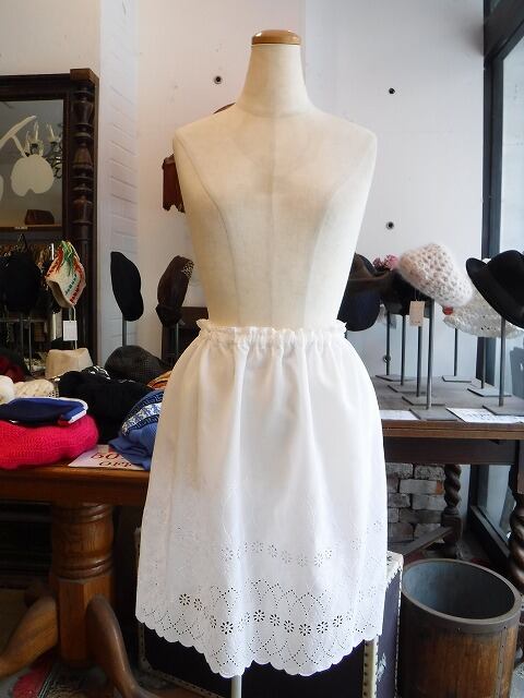ヨーロッパ古着 white cotton floral cutwork and wmbroidery scallop hem petit coat