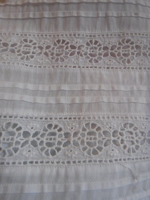 ヨーロッパ古着 early 20th century white cotton cutworks and pintucks long petit coat