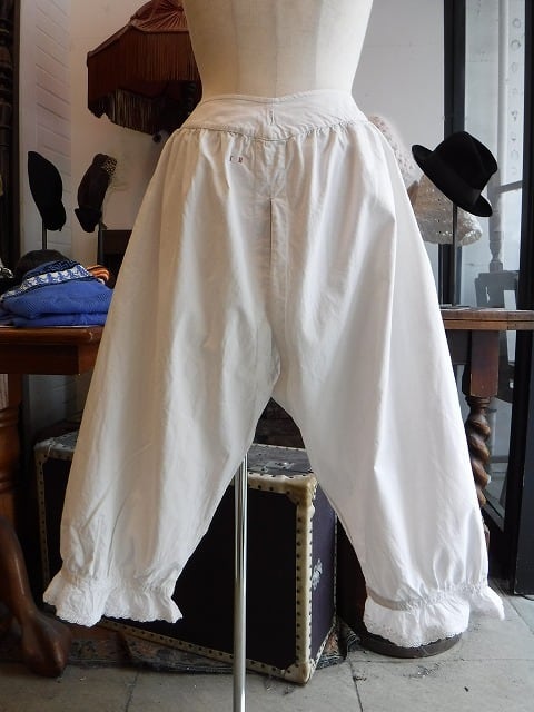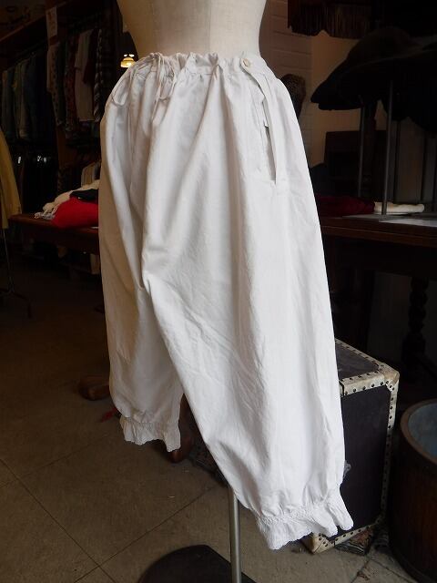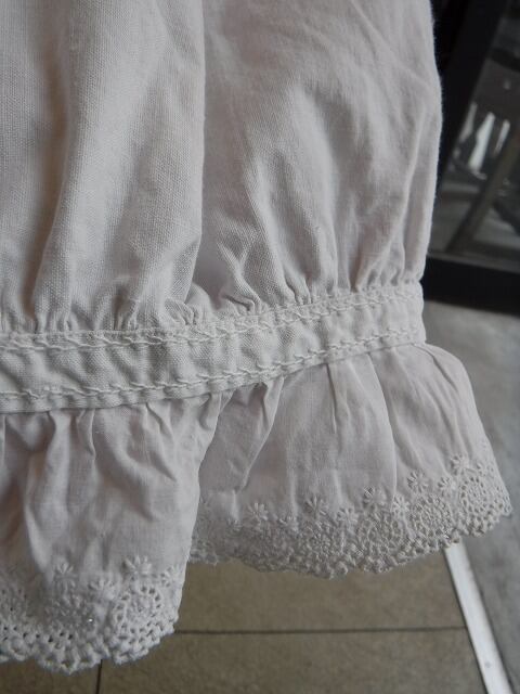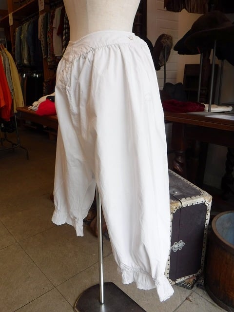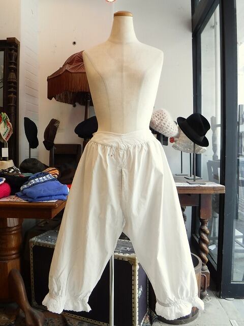 ヨーロッパ古着 white cotton red IB initials fine lace ruffle hem drawers