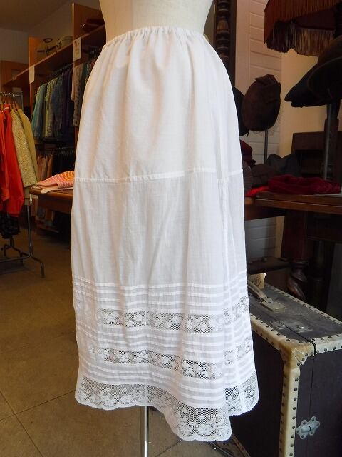 ヨーロッパ古着 white cotton pintucks and floral lace petitcoat
