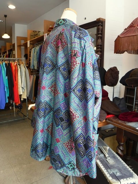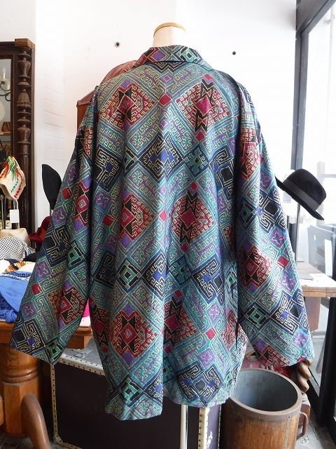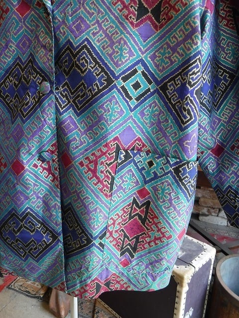 ヨーロッパ古着 purple green blue gold tribal graphic 80's oversized jacket