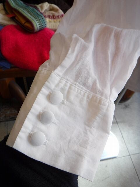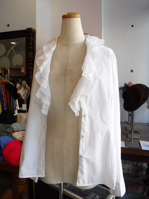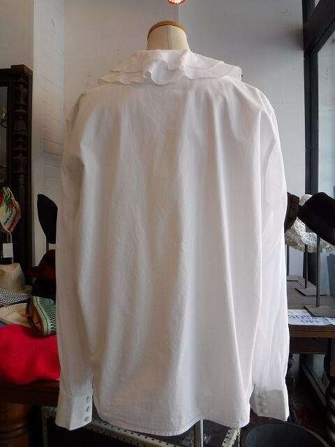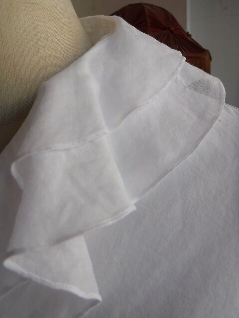 ヨーロッパ古着〘Anne Fontaine〙1990's ruffle collar and see through sleeve white cotton blouse