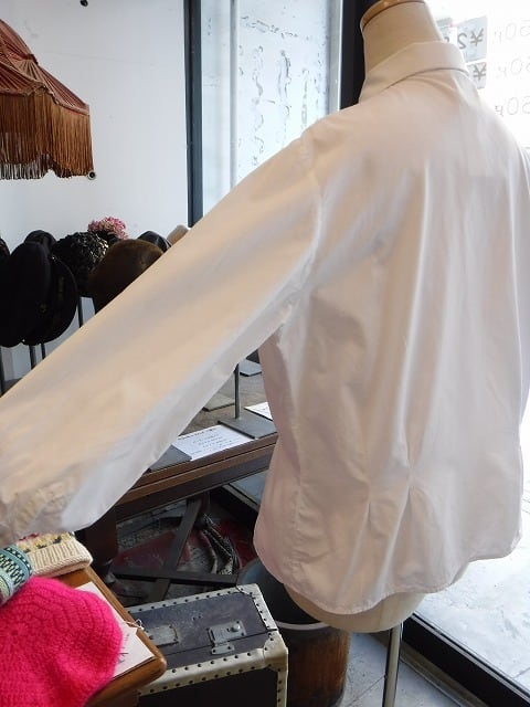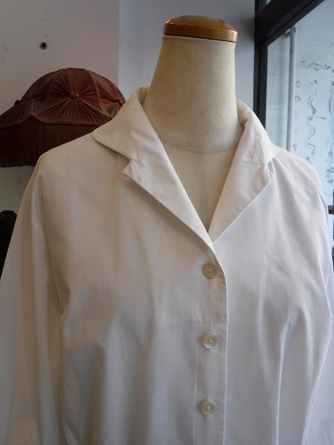 ヨーロッパ古着 open collar 1960's white cotton blouse