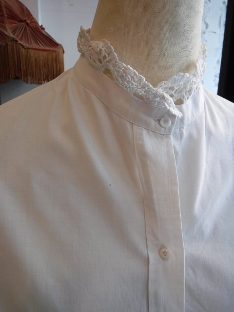 ヨーロッパ古着 early 20th century crochet lace collar AR initials white cotton blouse