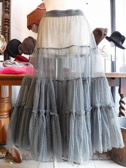 ヨーロッパ古着 dark gray lace see through big volume skirt
