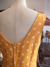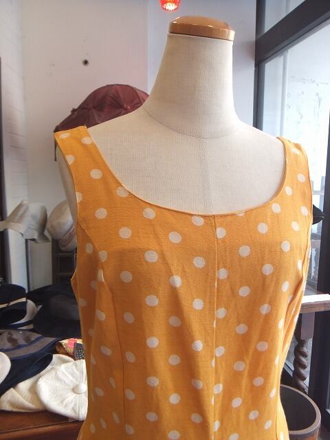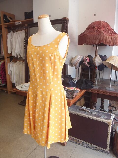 ヨーロッパ古着 マスタードイエロー ホワイト dot flared summer mini dress