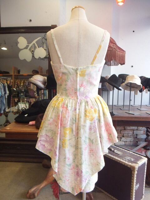 ヨーロッパ古着 pale tone floral peplum camisole cotton dress