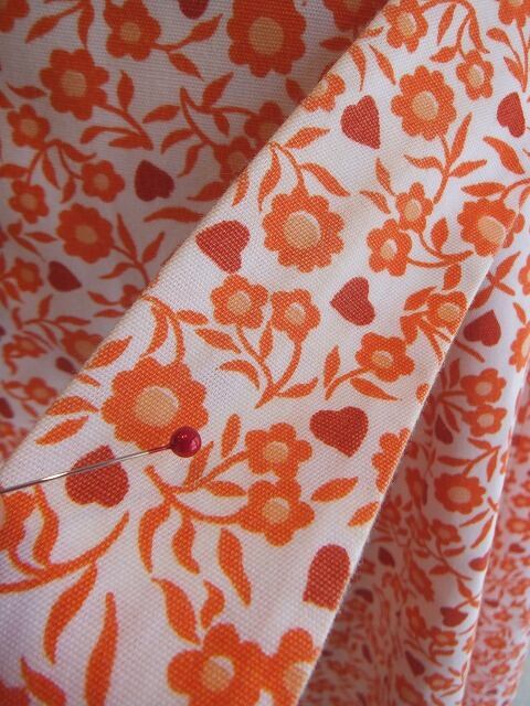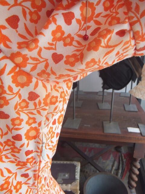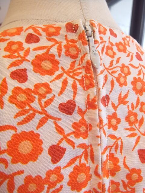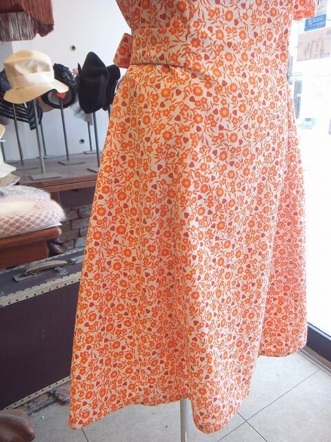 ヨーロッパ古着 orange tone flowers and ♥ puff sleeve cotton dress
