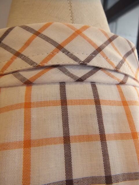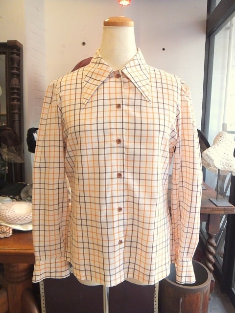 ヨーロッパ古着 ivory orange blue checkered pointed collar 60's shirt