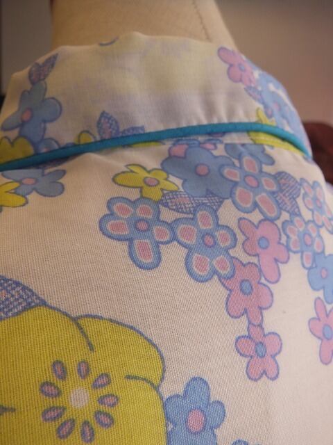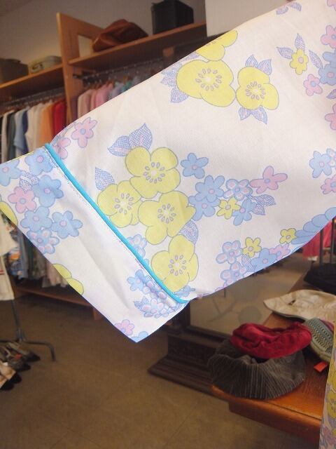 ヨーロッパ古着 pale blue yellow retro floral PJ cotton blend dress