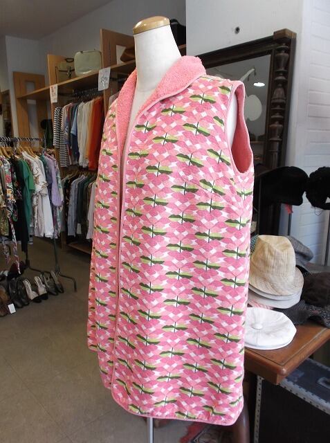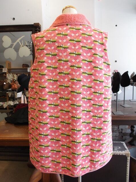 ヨーロッパ古着 vivid pink retro graphic sleeveless pile fabric jacket