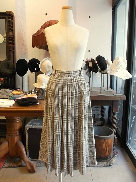 ヨーロッパ古着 light grqy and white houndstooth gathered skirt