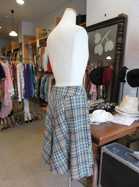 ヨーロッパ古着 blue beige plaid pleated mini skirt