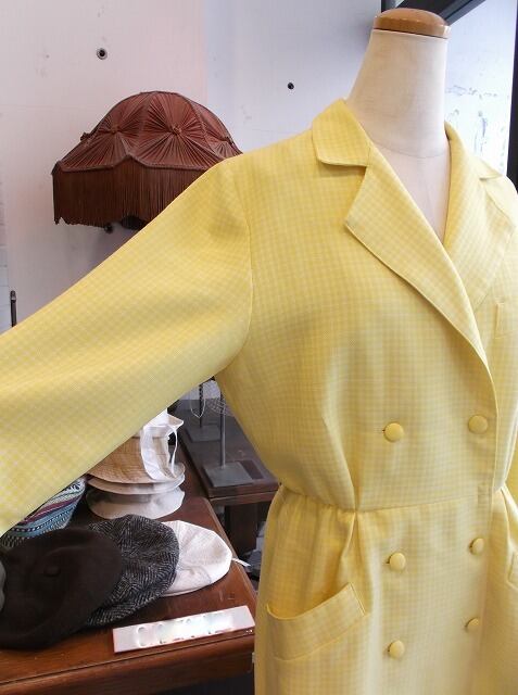 ヨーロッパ古着 yellow white lattice jacket like dress